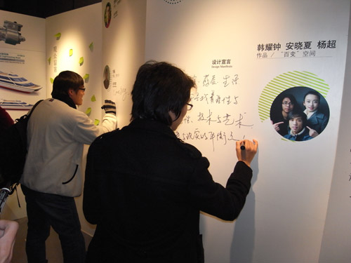 紧张评审后入围选手在各自设计师展板上写下自己的设计感言